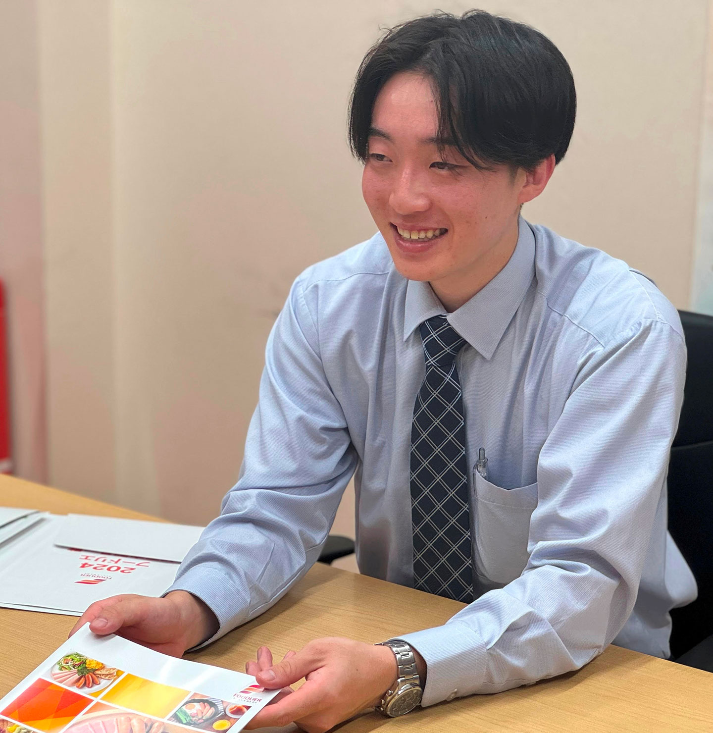 教えてください - 自分が提案した商品が、お得意先様の商品棚に並んでいるのを見た時、達成感を得ます。